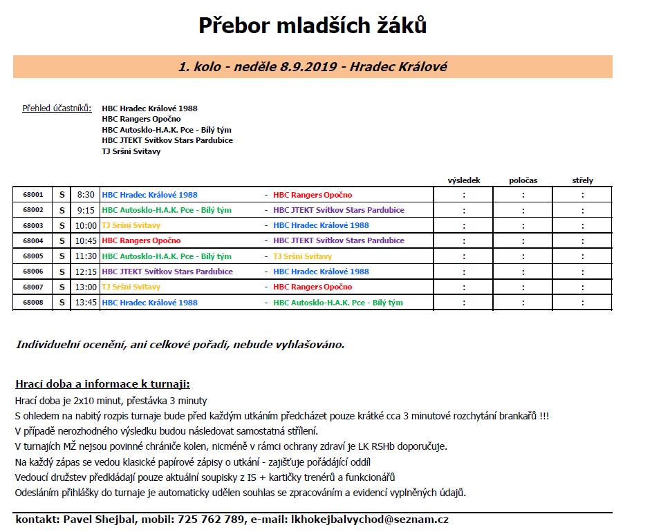 RL: HBC Autosklo-H.A.K. Pardubice C – TJ Sršni Svitavy (17:00, Pardubice – Polabiny)
