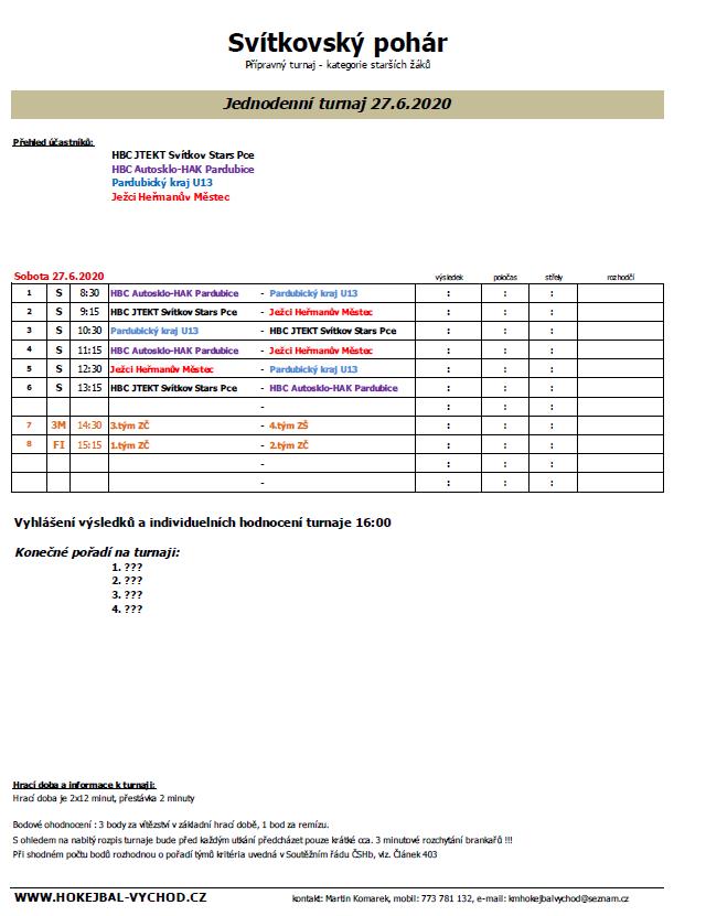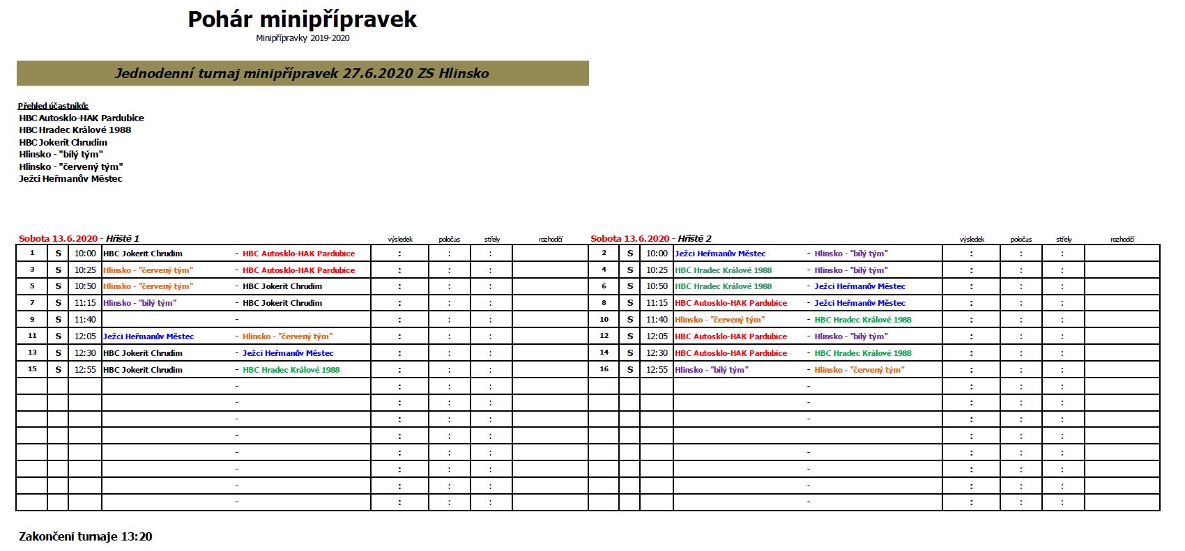 13:20 Zakončení turnaje