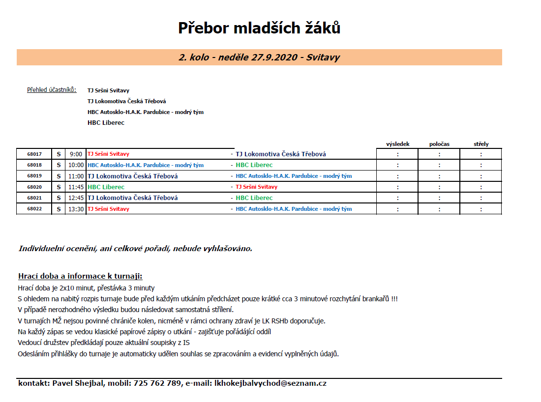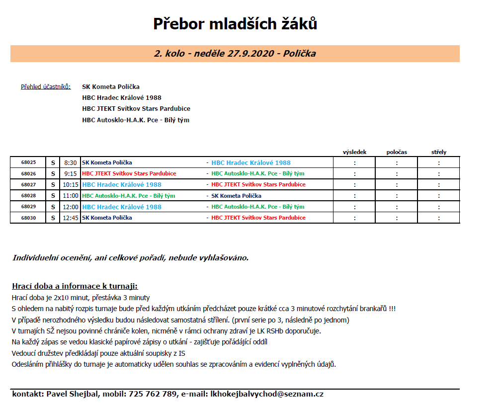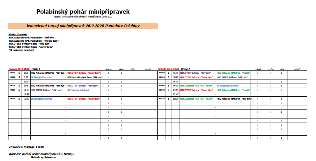 10:15 HBC JTEKT Svítkov Stars Pce „černý tým“ - HBC AUTOSKLO H.A.K. Pce „modrý tým“