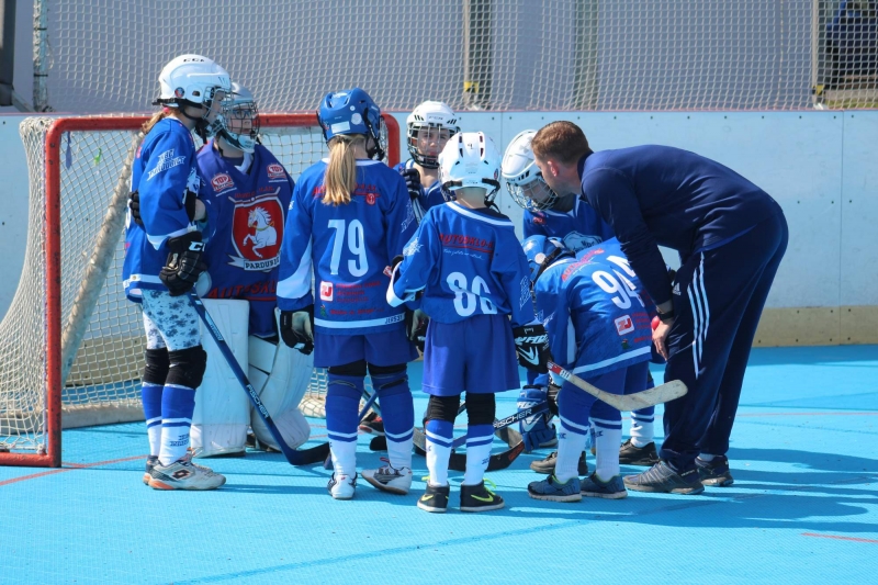 Trenér David Venzara (černý tým): „Dne 30. 3. 2019 jsme se zúčastnili turnaje minipřípravek ve Svítkově jako černý tým s růžovými rozlišováky…:). Postupně jsme sehráli zápasy s TJ Sršni Svitavy, HBC Autosklo-HAK Pardubice – bílý tým, HC Jestřábi Přelouč, HBC JTEKT Svítkov Stars Pardubice a s SK Hokejbal Letohrad – modrý tým. Kluci si na prvním venkovním turnaji v tomto roce postupně zvykali na zápasové tempo, kdy jim byl kladen důraz na kvalitní přihrávku, přehled a pohyb na hřišti. Od zápasu s HC Jestřábi Přelouč, kdy se klukům podařilo otočit nepříznivé skóre 1:3 na konečných 4:3 v jejich prospěch, hráli kluci parádně a zaslouží si velkou pochvalu nejenom za předvedenou hru, ale hlavně za jejich přístup ke hře, kdy v každém střídání bojovali tak, jak se za HBC Autosklo-HAK Pardubice sluší…:).“