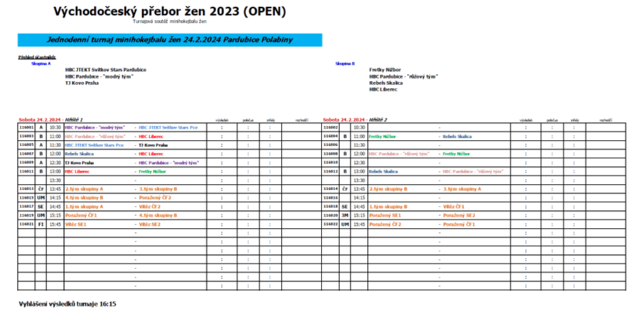 16:15 Vyhlášení výsledků turnaje