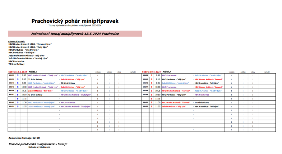 12:20 Zakončení turnaje