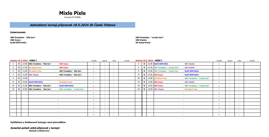 13:00 HBC Pardubice „modrý tým“ – Rytíři DDM Děčín