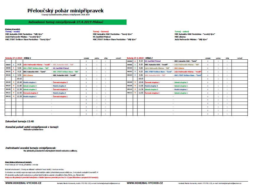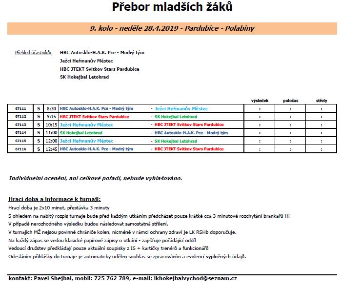 Turnaj – modrý: HBC Autosklo-H.A.K. Pce „bílý tým“, Ježci Heřmanův Městec „modrý tým“, HBC JTEKT Svítkov Stars Pce „černý tým“