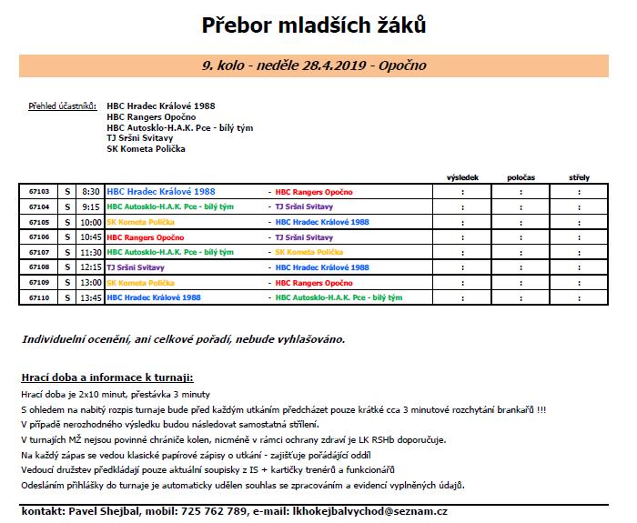9.kolo Přeboru MŽ v Opočně: