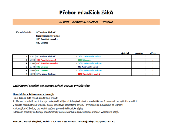 3.kolo Přeboru mladších žáků (Přelouč):