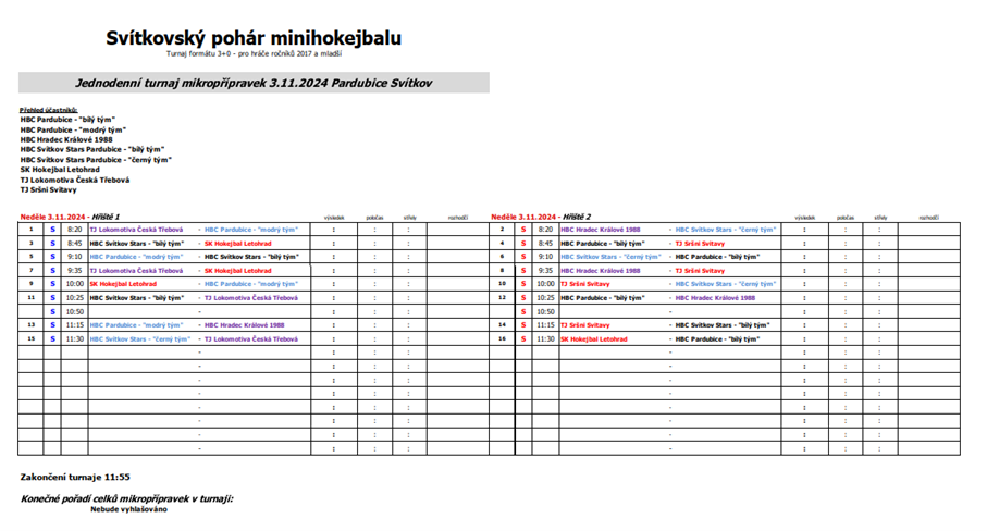 11:55 zakončení turnaje