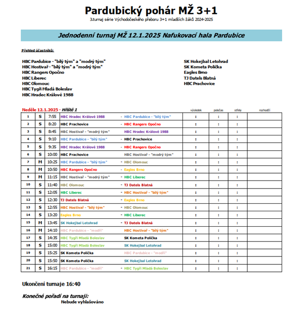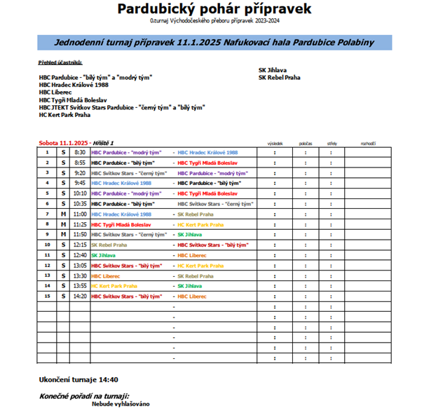 16:15 HBC Pardubice "modrý tým" - HBC Tygři Mladá Boleslav