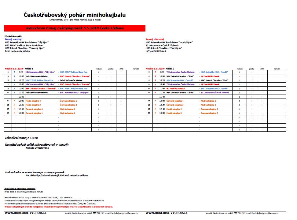 Turnaj – červený: HBC Autosklo-H.A.K. Pce „modrý tým“, TJ Lokomotiva Česká Třebová, HBC Jokerit Chrudim „žlutý tým“, HC Jestřábi Přelouč