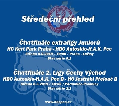 STAV ČTVRTFINÁLOVÉ SÉRIE 2:2, 5.zápas (8.5.2019, 18:00, Pardubice-Polabiny)