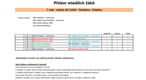 09:35 HBC Pardubice „modrý tým“ - HBC Svítkov Stars Pce „bílý tým“