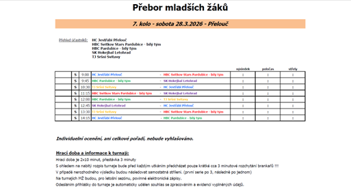 14:15 HC Jestřábi Přelouč - HBC Pardubice „bílý tým“