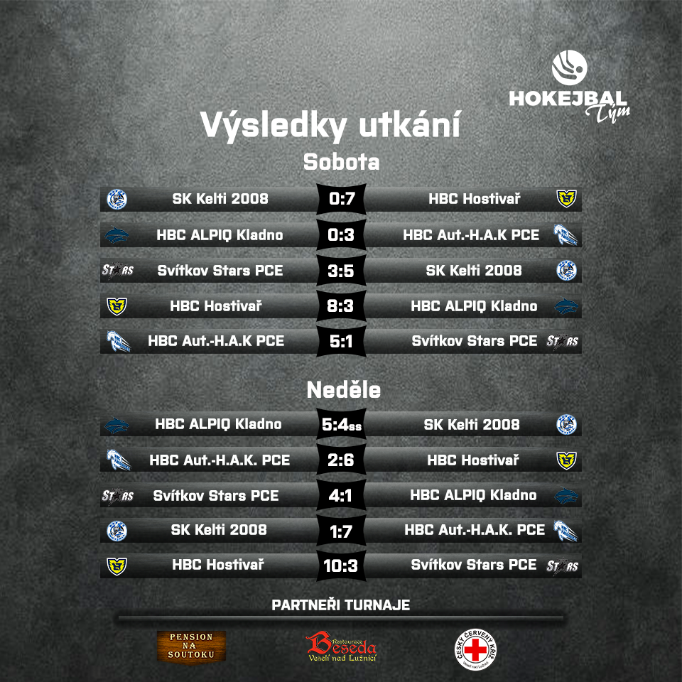 Turnaj - modrý: HBC Autosklo-H.A.K. Pardubice „bílý“ a „růžový“, Ježci Heřmanův Městec „modrý tým“, HC Jestřábi Přelouč, SK Kometa Polička
